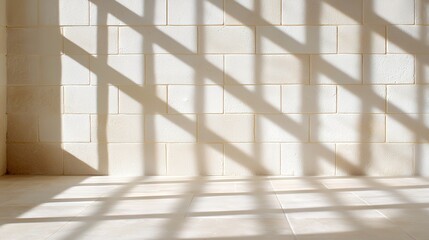 Geometric shadows on white brick wall and floor