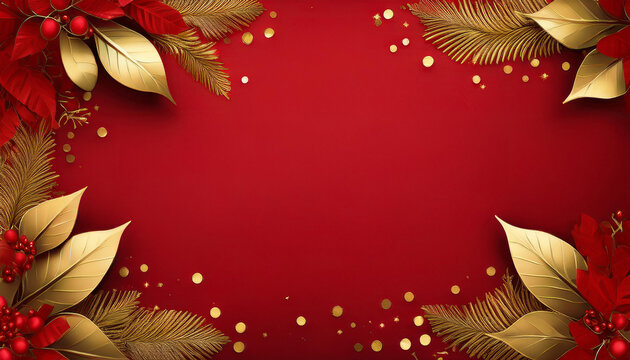 A vibrant red background with golden sparkling glitter and bokeh falling from a bright light source, creating a festive and magical atmosphere.