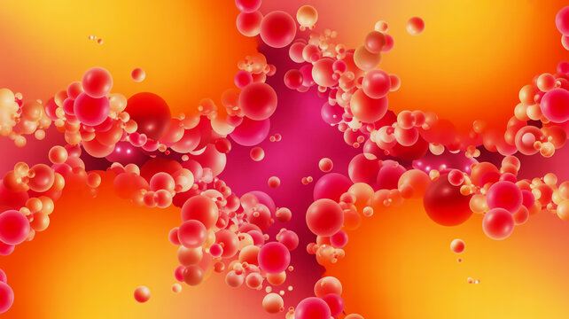 Abstract red green particles of liquid Glowing orbs background. Shiny transparent gradient backdrop. Strong depth of field.