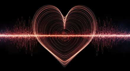A heart-shaped visualization, composed of swirling lines, intersects with a wavy line of light on a black background