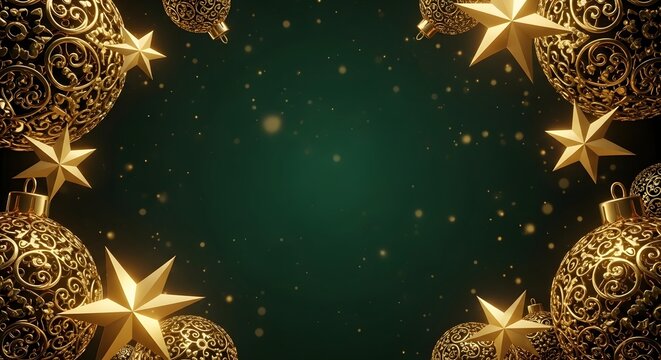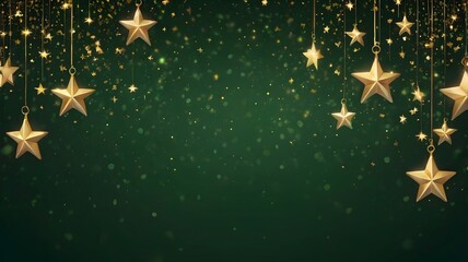 Elegant green background with gold star elements, free copyspace area. generative ai