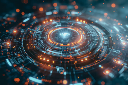 Abstract digital interface with data elements and blue background