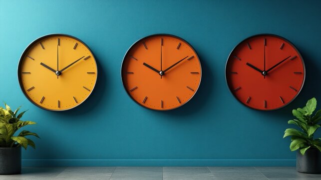 A collection of blue and white plates with clocks on them. The plates are arranged in a row and the clocks are set to different times. City of Puebla, Mexico, crafts