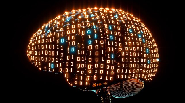 Brain Composed of Binary Code Glowing Numbers Symbolizing Digital Intelligence