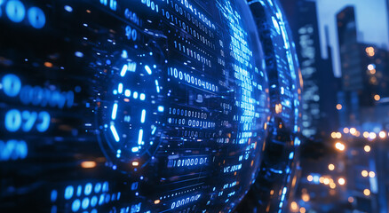 Abstract digital binary code matrix with data feedback loops globe business tech