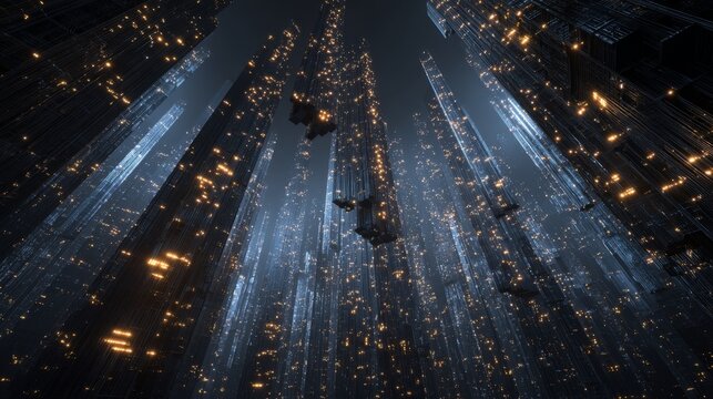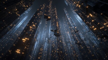 Futuristic data visualization with digital code overlay
