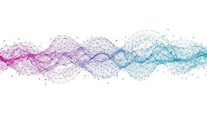 Dynamic abstract network waves with gradient colors, representing data flow and connectivity