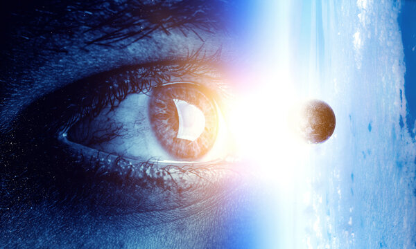 Human eye and space. Elements of this image furnished by NASA.