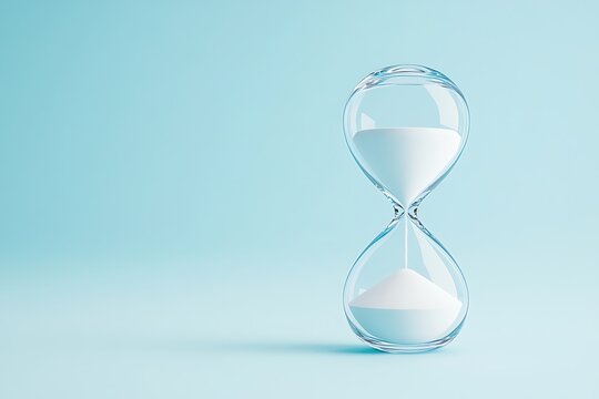 A clean, minimalist image of an hourglass set against a light blue background, symbolizing the passage of time and simplicity