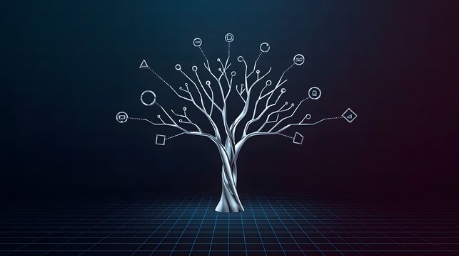 Abstract digital tree with glowing lights, representing technology and innovation.