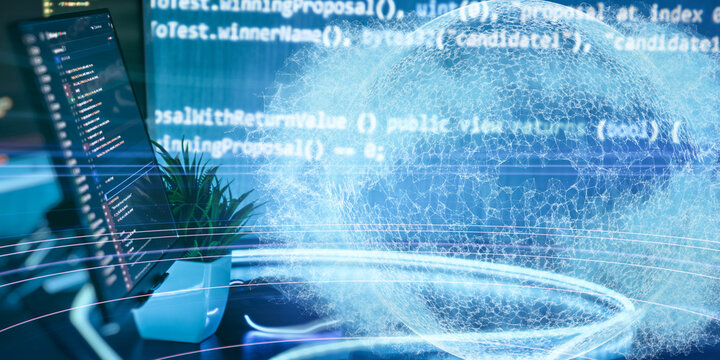 Abstract Cyber Workspace With Code And Data Visualization Images
