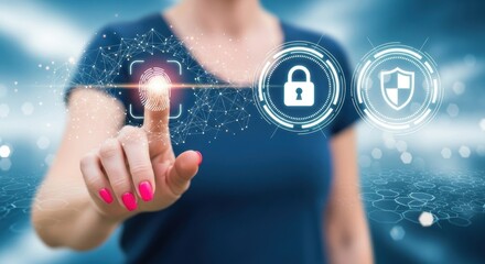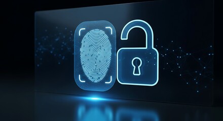 Futuristic fingerprint scanning interface with cybersecurity elements