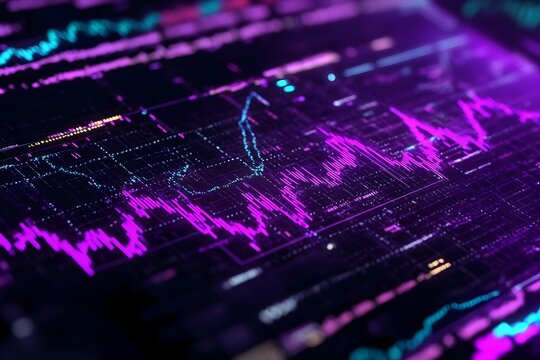 Digital financial data processing with graph lines and symbols