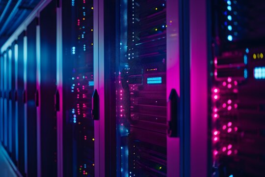 Modern data center with advanced server racks and led lighting