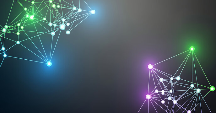 Glowing network nodes connecting in abstract digital geometry constellation tech concept