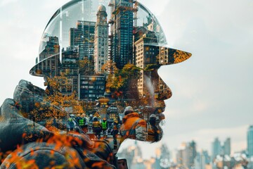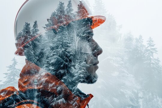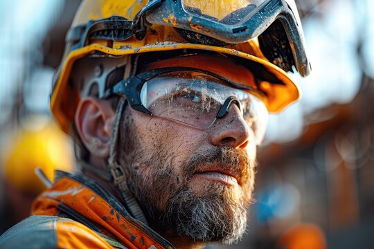 Double exposure Safety Gear Equipment Close-up of construction workers wearing safety gear