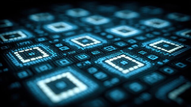 A detailed rendering of a multi-layered computer chip and circuit board assembly with visible data pathways.