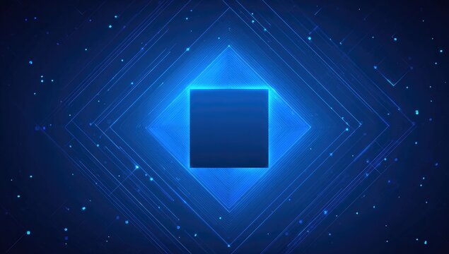Dark blue background with glowing, diamond-shaped frame around a central dark square.  Abstract, technological design