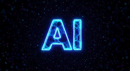 3D rendering of an AI head with the letters "AI" glowing inside, filled with circuitry and data streams. The background is dark blue with bokeh lights creating depth.
