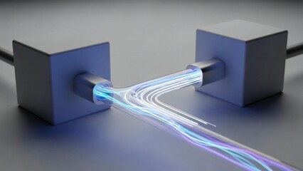 Digital data stream flowing through abstract glowing lines, representing fast network connections, advanced technology, and modern information transfer in a dynamic, futuristic environment