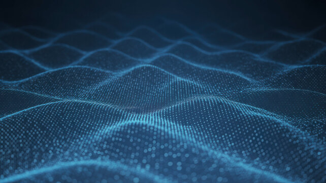 Abstract blue particle waves on dark backdrop concept of technology connection and data stream visualization for digital background