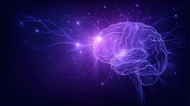 A vibrant purple background hosts a network of interconnected points and lines, forming transparent triangular shapes, creating a dynamic, abstract composition