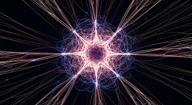 Dynamic light trails converge in mesmerizing starburst pattern on dark backdrop