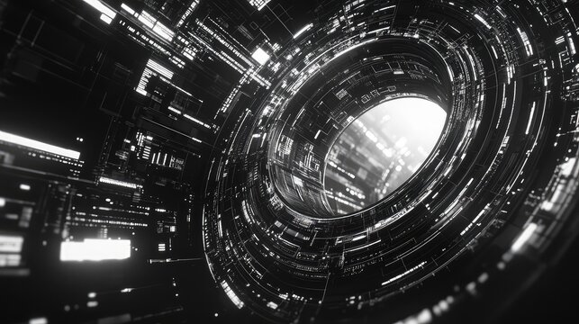 Abstract digital portal showcasing big data flowing through a futuristic cyberspace tunnel, representing advanced information processing and the interconnected global network