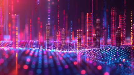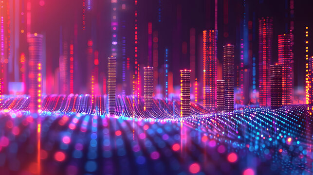 Cryptocurrency symbols illuminate a futuristic digital technological data landscape