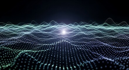 Abstract Digital Landscape of Glowing Particles and Waves.