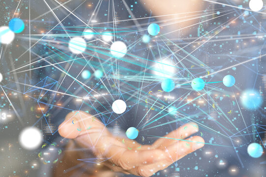 Abstract digital connections with data processing visualization