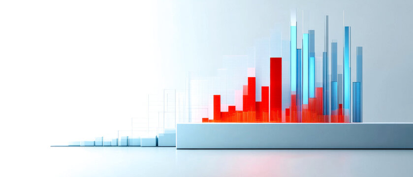 Futuristic 3d bar chart with transparent data visualization