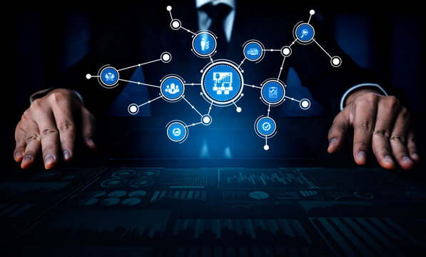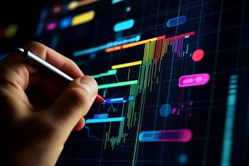 Businessman illustrates digital project management gantt chart for business development workflow