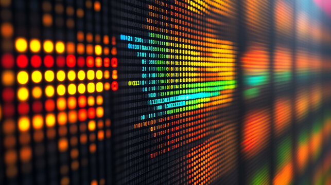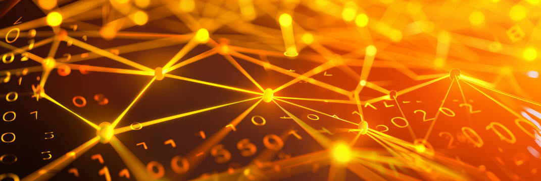 Abstract digital background representing a binary data stream with glowing numbers and depth of field effect