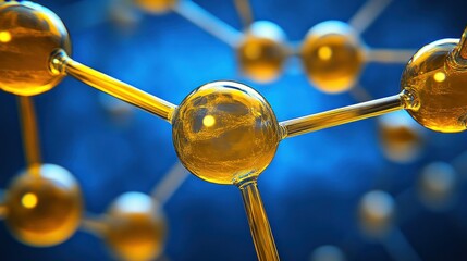 Golden spheres connected by thin bars against a soft blue background