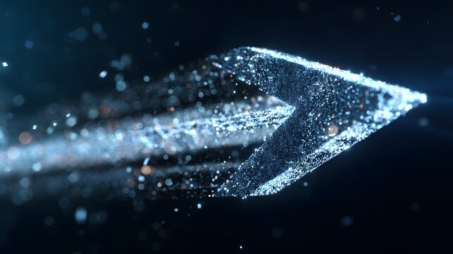 Blue Wireframe Pencil Creating a Trail of Glowing Blue Particles on a Dark Background drawing. Futuristic Digital Technology Background .Artificial Intelligence Data Flow Background.