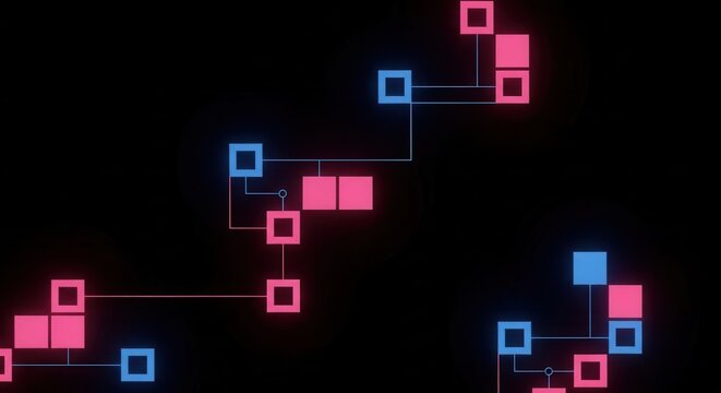 Cyberpunk network: Abstract digital structures with a vibrant neon aesthetic reminiscent of