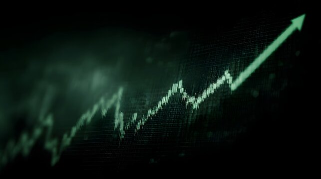 Bullish market chart with rising green arrow and glowing effect