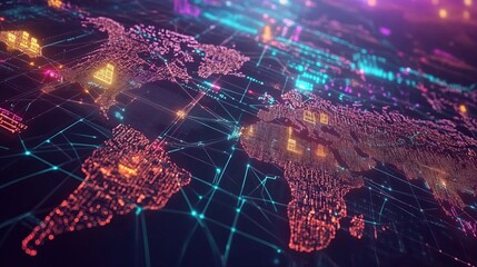 Abstract digital world map with data visualization elements