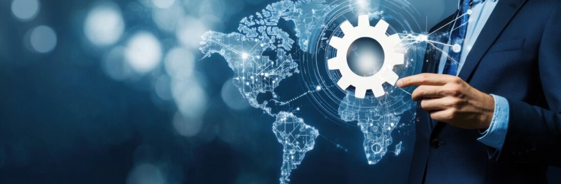 Futuristic data interface with global tech connections