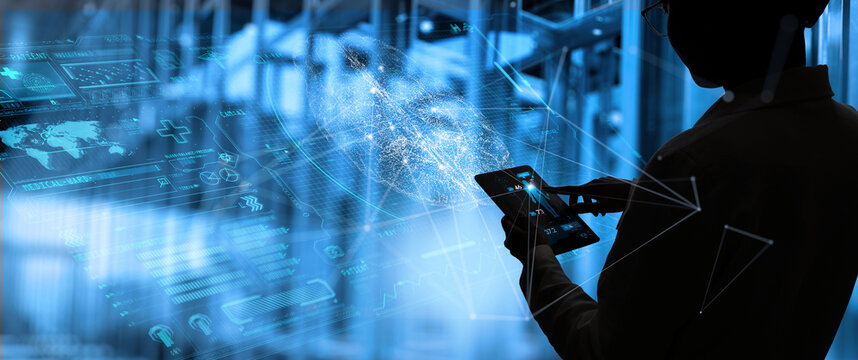 Futuristic digital data interface over data center