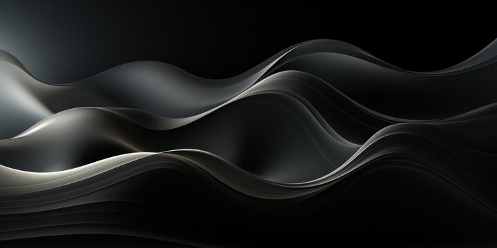 Black dark gray silver white wave abstract background for design. Light wave, wavy line. Ombre gradient. Noise rough grungy grain brushed metal metallic effect. Matte shimmer.Web banner.Wide.Panoramic