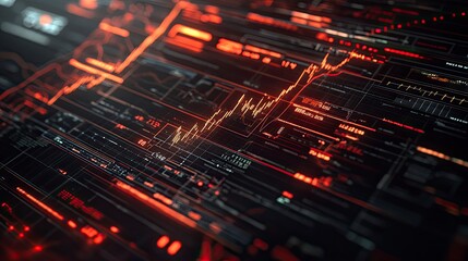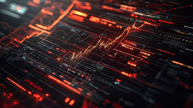 Abstract digital display with glowing data visualizations
