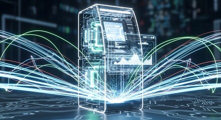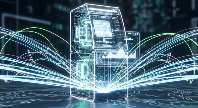 Futuristic data center illustration shows glowing server networks a modern digital infrastructure concept