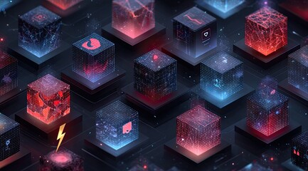 Futuristic image of glowing cubes on a grid, representing data processing or technological concepts