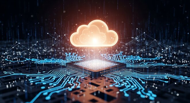 Photo of cloud computing technology connects to the central processing unit