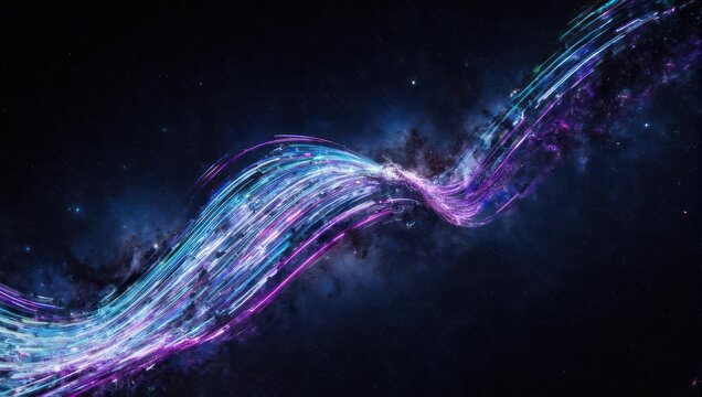 Dynamic Glowing Light Trail in Cosmic Space with Vibrant Blue and Purple Streaks.