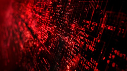 This image showcases a glowing red digital landscape filled with data and codes arranged in intricate patterns, giving a sense of a futuristic and high-tech environment for data visualization.