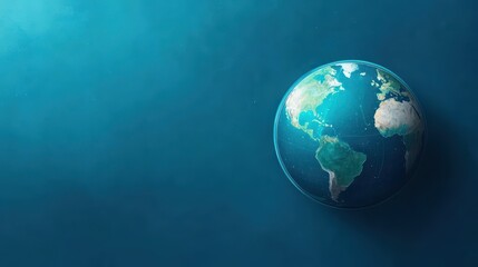 A 3D globe showing the world map and continents is pictured on a table and in a glass with reflections, representing a global business and travel concept
