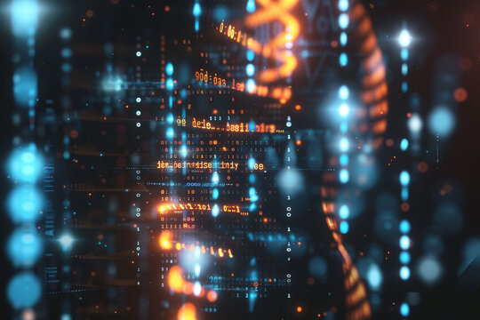 Futuristic science background with glowing dna strands, molecular structures, and abstract biotechnology elements for medical research, genetic engineering, and scientific innovation illustration